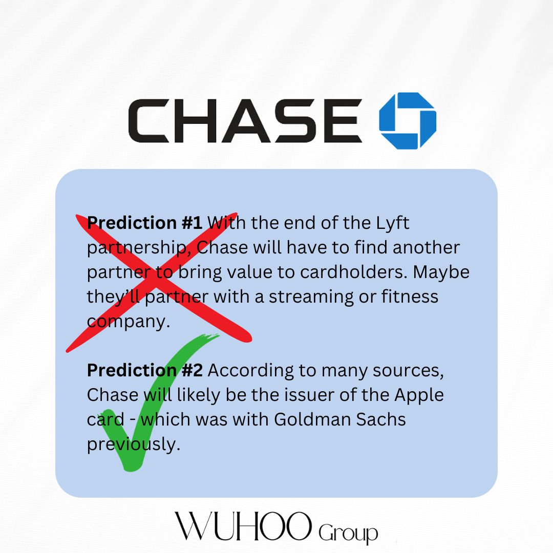 Chase went back with Lyft benefits, boo. In early 2026 Chase finally closed the deal with Apple, but I still count it!