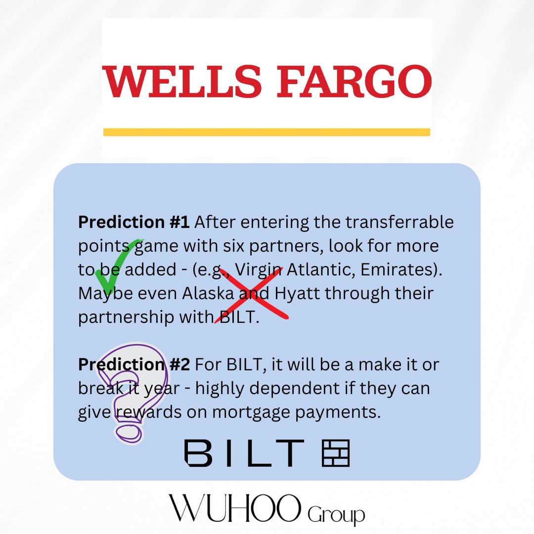 Wells Fargo did add JetBlue at a good 1:1 rate, but nothing else. And Wells Fargo successfully got rid of Bilt so….?